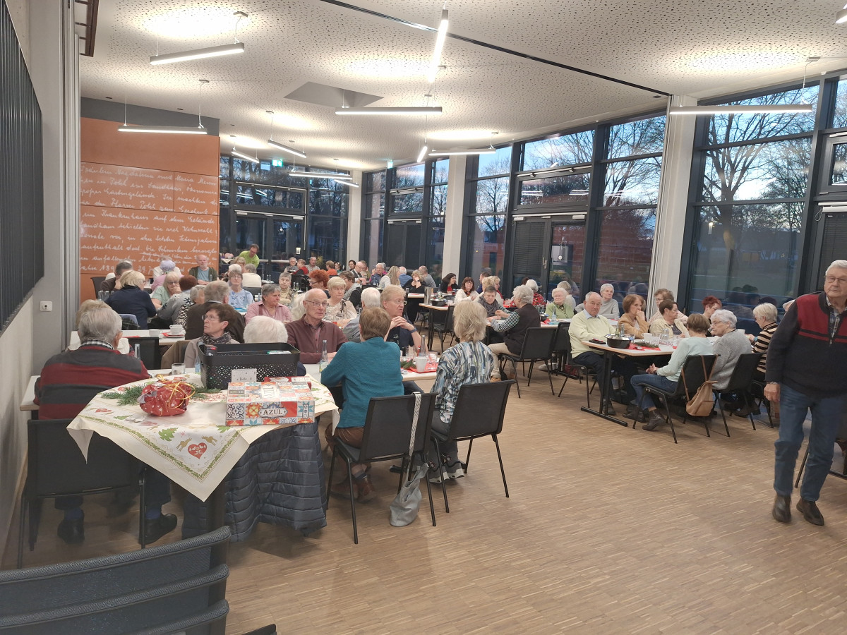 Rund 90 Teilnehmerinnen und Teilnehmer konnten sich am 15. Dezember 2025 über ein abwechslungsreiches und stimmungsvolles Programm bei der städtischen Weihnachtsfeier des Seniorentreffs freuen. In gemütlicher Atmosphäre begann der Nachmittag bei Kaffee und Kuchen.